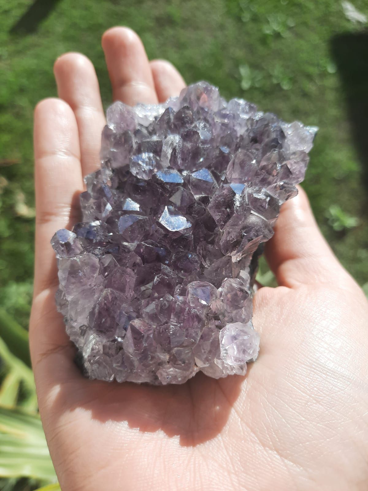 Uma excelente pedra extremamente protetora e poderosa com uma vibração altamente espiritual, ela nos protege contra ataques psiquicos, transmutando a energia em amor. Calmante natural, a ametista bloqueia o estresse geopático e as energias negativas do ambiente. Sua serenidade favorece a meditalão e estados de consciencia mais elevados, essa pedra tem um forte poder de cura e purificação, além de aguçar a percepção espiritual.
