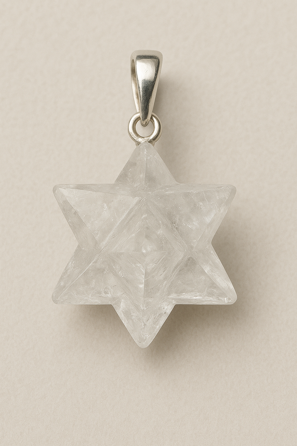 A solução está na pureza e no poder do cristal mestre: o Pingente Merkabah de Quartzo Transparente!