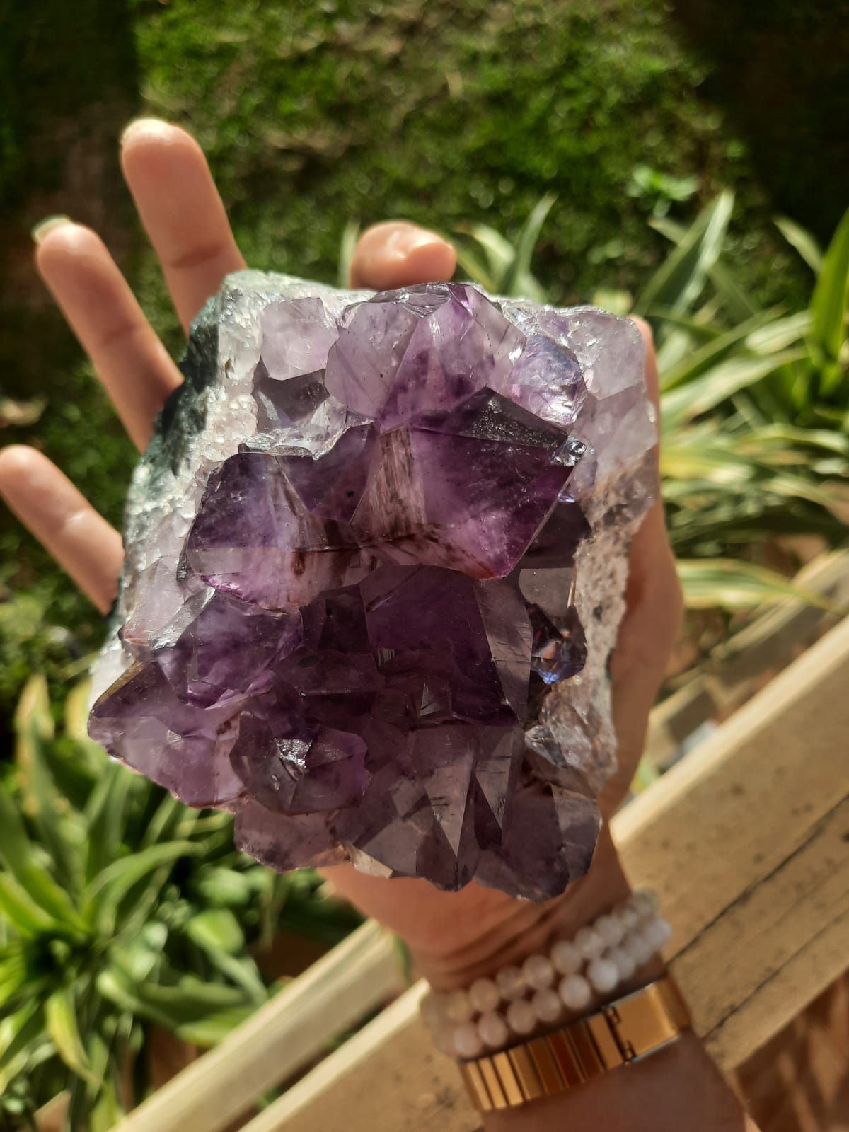 Uma excelente pedra extremamente protetora e poderosa com uma vibração altamente espiritual, ela nos protege contra ataques psiquicos, transmutando a energia em amor. Calmante natural, a ametista bloqueia o estresse geopático e as energias negativas do ambiente. Sua serenidade favorece a meditalão e estados de consciencia mais elevados, essa pedra tem um forte poder de cura e purificação, além de aguçar a percepção espiritual.